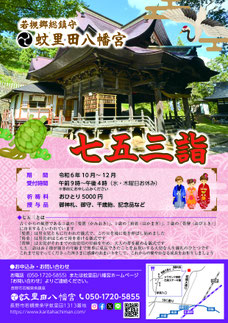 以下の日程により秋季例大祭を斎行いたします。多くの皆様のお参りをお待ちしています。